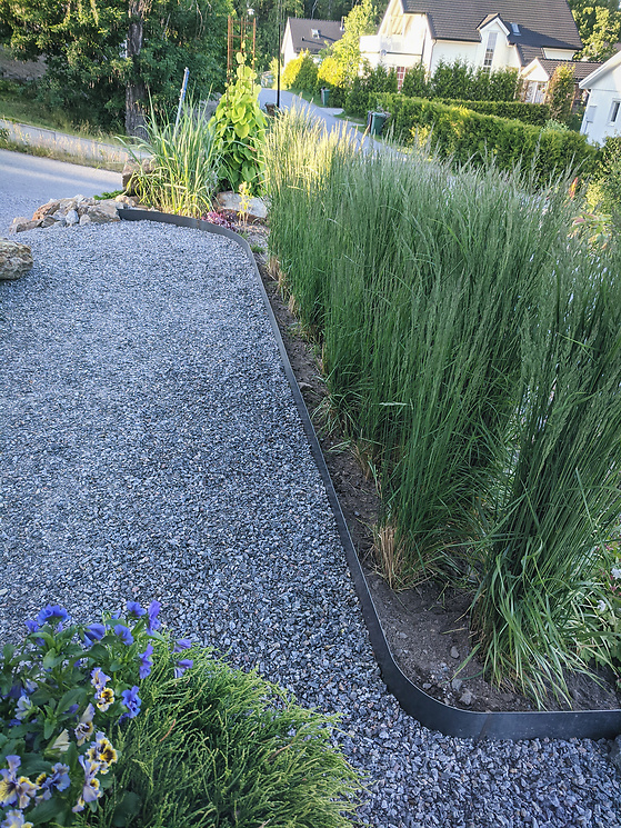 Jag tröttnade på att försöka få tag på en snygg portal som är rejäl och som inte kostar en förmögenhet. Detta resulterade i att vi på baksidan har byggt en portal som ska kläs med armeringsnät på sidorna och med corten i framkant. Baksidan som syns på bilden är svartbetsad. Bilder på framsidan av portalen kommer så fort vi har fått cortenplåtarna på plats. På sidorna av portalen har jag planterat klätterrosor, Rosa 'Climbing iceberg' . Jag är väldigt nöjd med resultaten hittills.