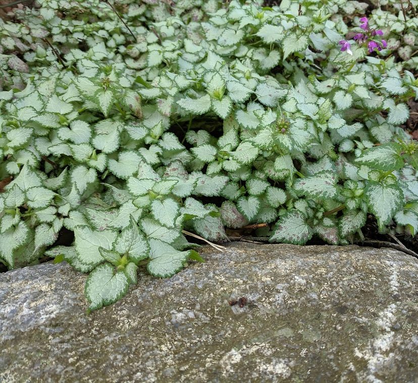 När jag var ute och tog ett varv i trädgården idag så slogs jag av hur fint Rosenplistern, Lamium maculatum, lös upp sin plats i det i övrigt väldigt gråa och regniga vädret.