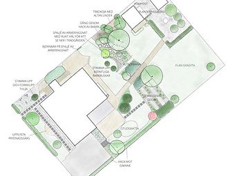- Förslag på markbeläggning och material. Exempelvis grus, trädäck, trampsten, asfalt m.m.